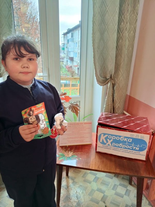 Всероссийская благотворительная акции "Коробка храбрости", направленная на поддержку детей, находящихся на длительном лечении и реабилитации в медицинских учреждениях. Эта акция призвана поднять настроение маленьким пациентам и подарить им немного радости в непростых условиях.